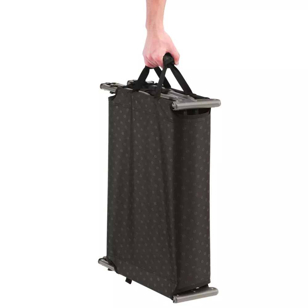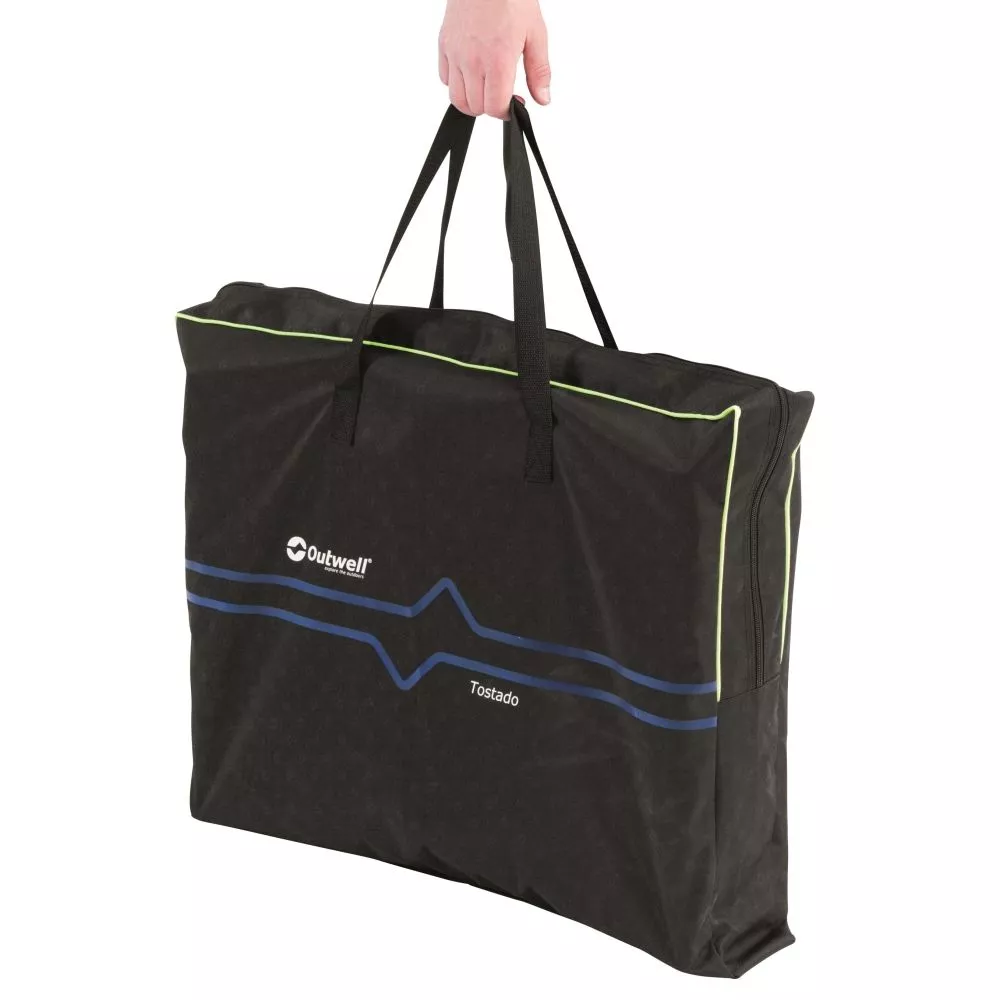 Das Camping-Klappbett Outwell Tostado kann schnell und einfach mit leicht einrastenden Beinen aufgebaut und wieder flach zusammengelegt werden. Durch die schmale Gestaltung ist das Feldbett leicht zu transportieren. Mit einer Höhe von 21 cm liegt man bequem geschützt über dem Boden und erhält zudem nützlichen Stauraum unter dem Campingbett. Mit zwei Stoffgriffen ausgestattet, lässt sich die zuverlässige Campingliege mit einem stabilen Stahlgestell einfach transportieren. Eine Tragetasche für Transport und Aufbewahrung ist im Lieferumfang enthalten.