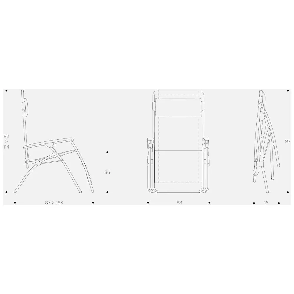 Der Lafuma R Clip ist ein stufenlos verstellbarer Relaxsessel für optimale Erholung. Der R Clip findet leicht seinen Platz im Garten, am Swimmingpool oder auf der Terrasse. Die beste Ruheeinstellung ist die bekannte „Schwerelosigkeit“ (mit den Füssen leicht oberhalb des Herzens). Der hochwertige Bartyline ISO Bezug wird an den Stahlrohren durch Clips aus Elastomer gehalten. Somit hast du einen stabilen und festen Komfort, der deinen Rücken unterstützt.